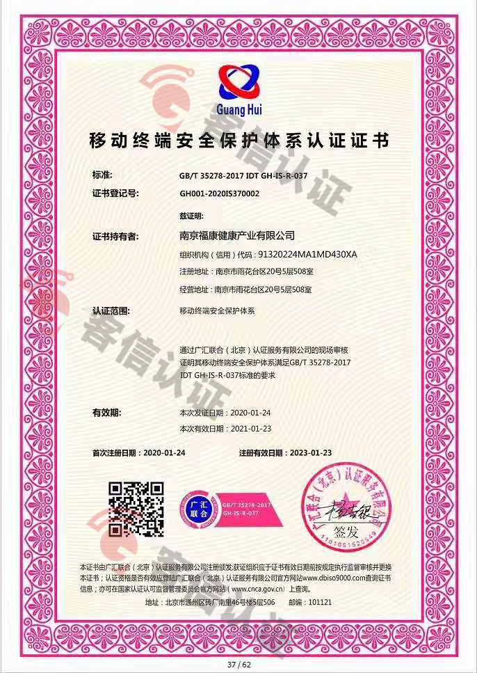 恭喜南京??低ń】诞a業有限公司獲取移動終端安全保護體系認證