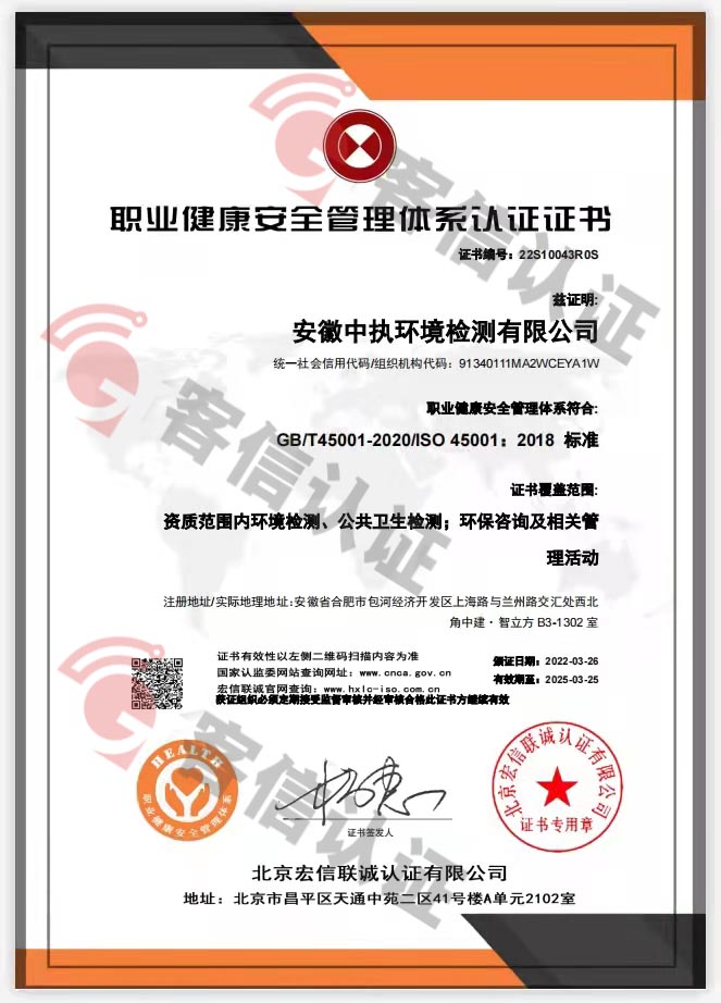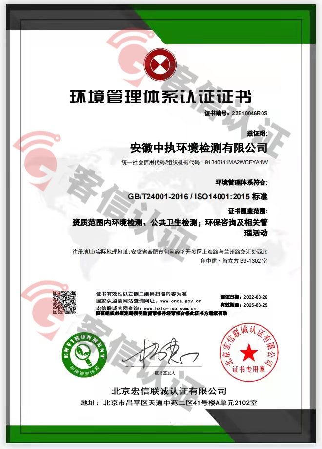恭喜安徽中執(zhí)環(huán)境檢測有限公司獲得ISO三體系認(rèn)證證書