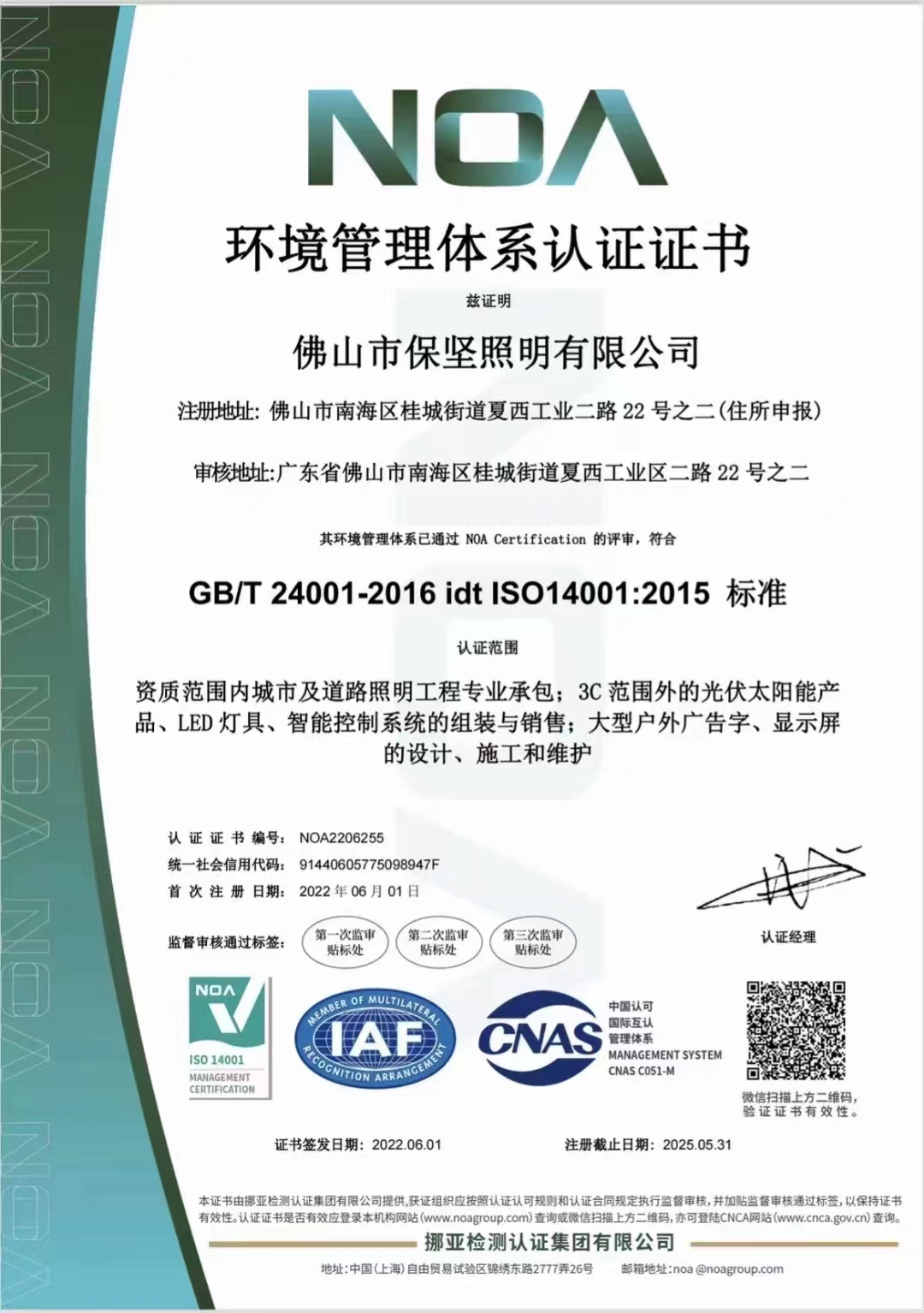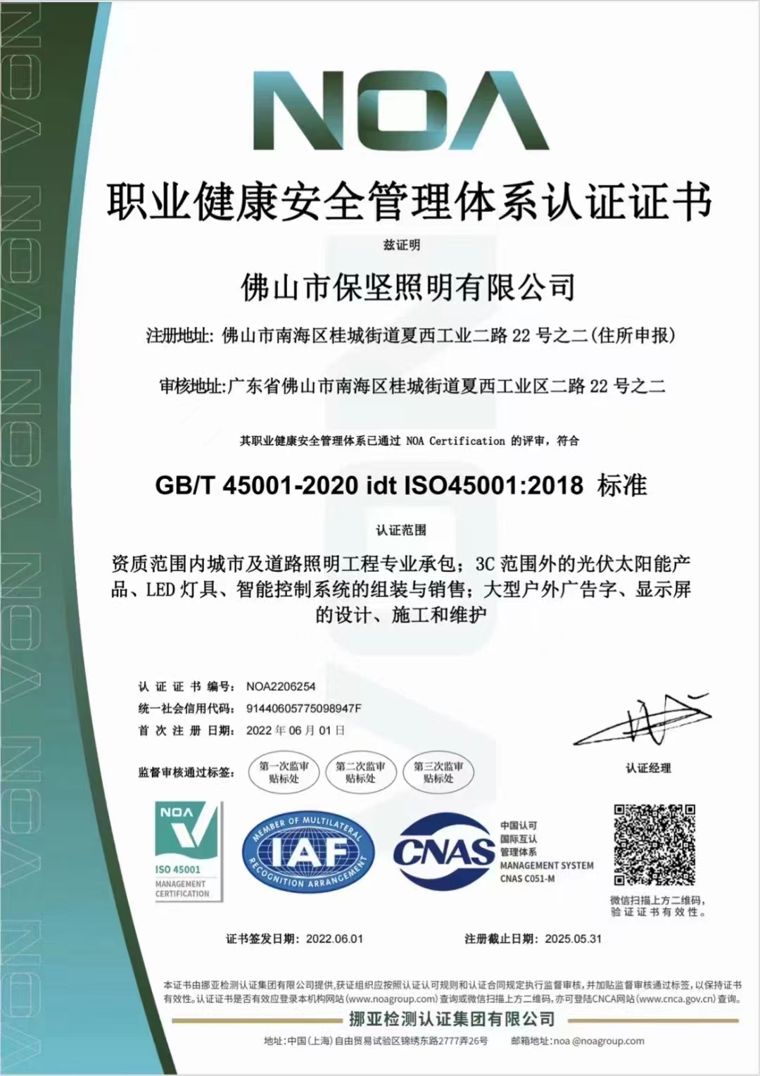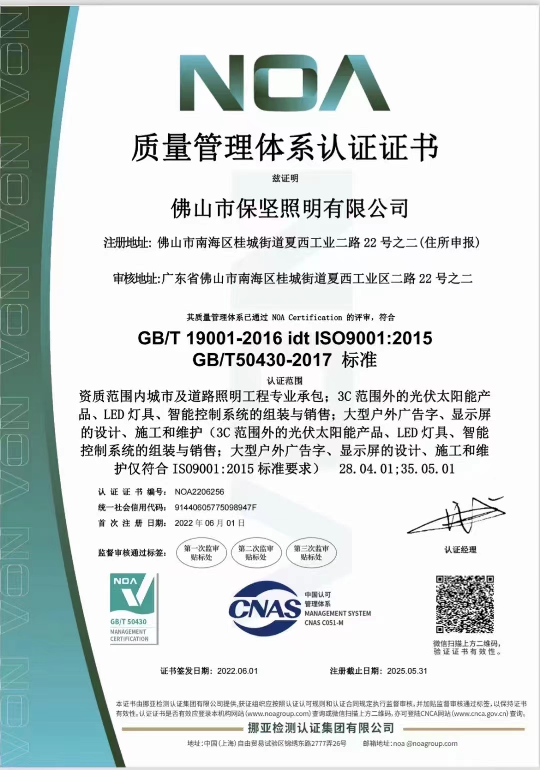 恭喜佛山市保堅(jiān)照明有限公司獲得ISO三體系認(rèn)證證書(shū)