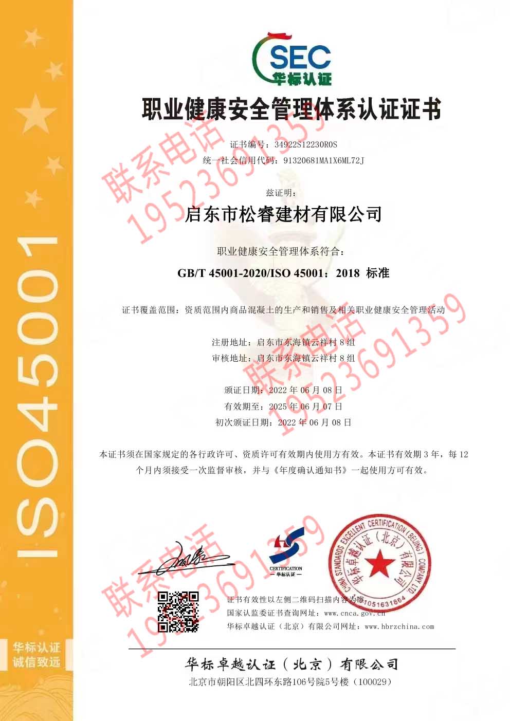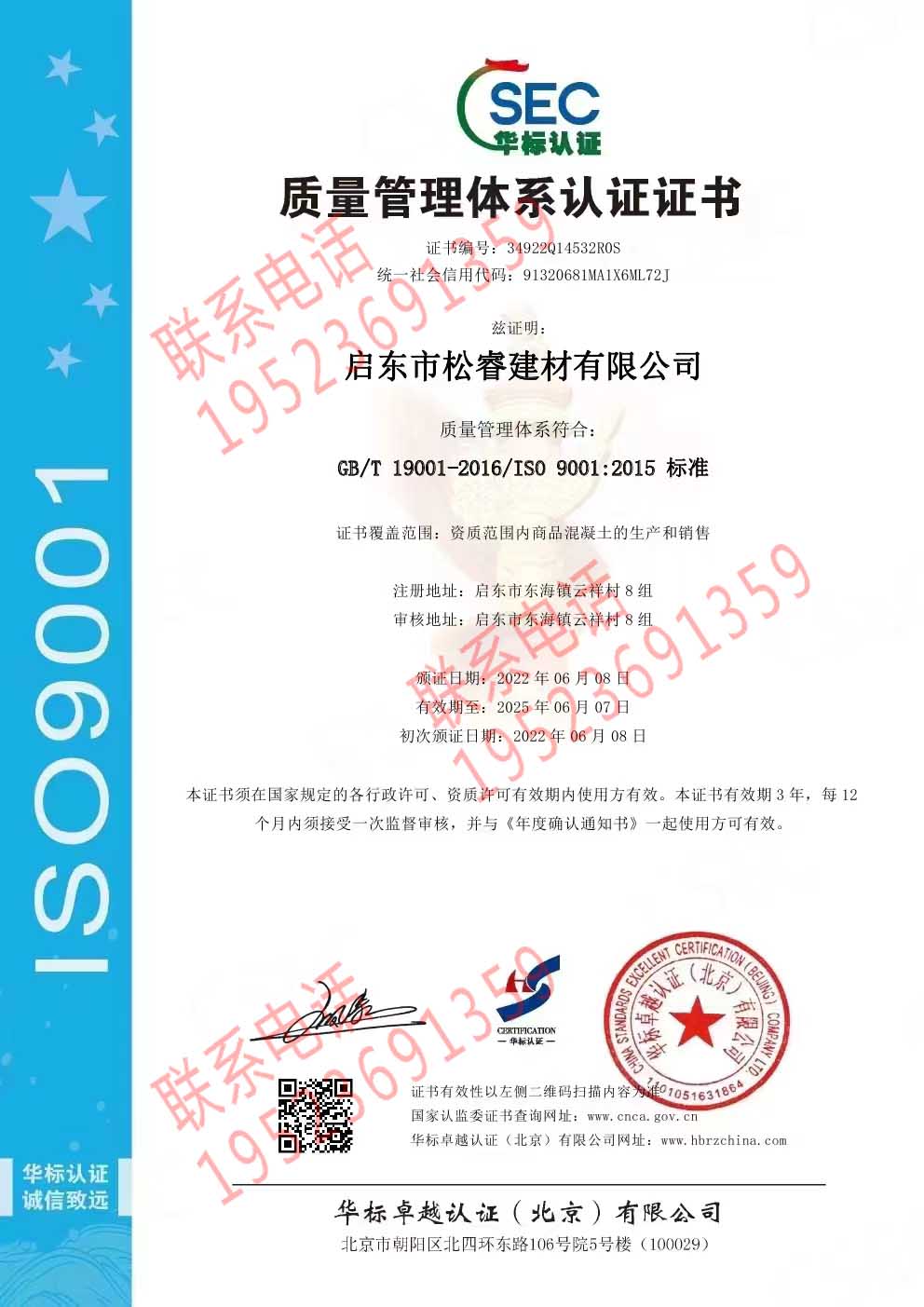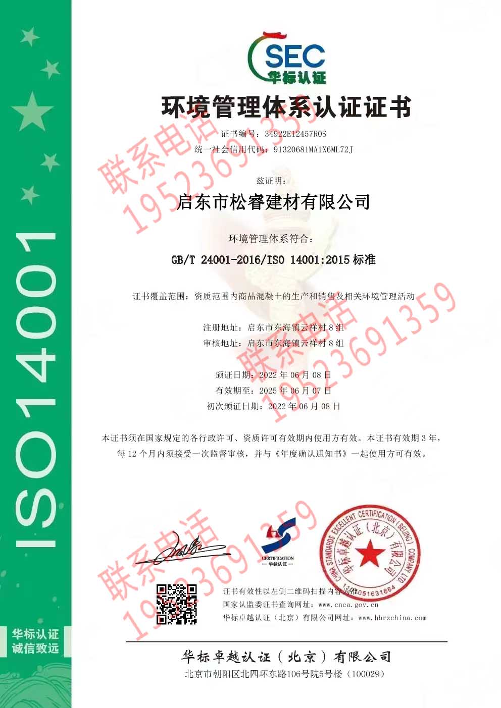 恭喜啟東市松睿建材有限公司獲得ISO三體系認證證書